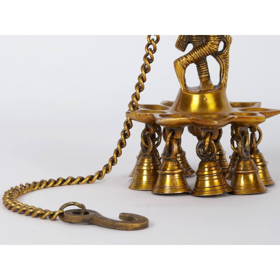 8นิ้วทำด้วยมือทองเหลืองลอร์ดกฤษณะตะเกียงตะเกียงน้ำมันหลังคาแขวนวิคโคมไฟสำหรับเป็นของขวัญผลิตในอินเดีย