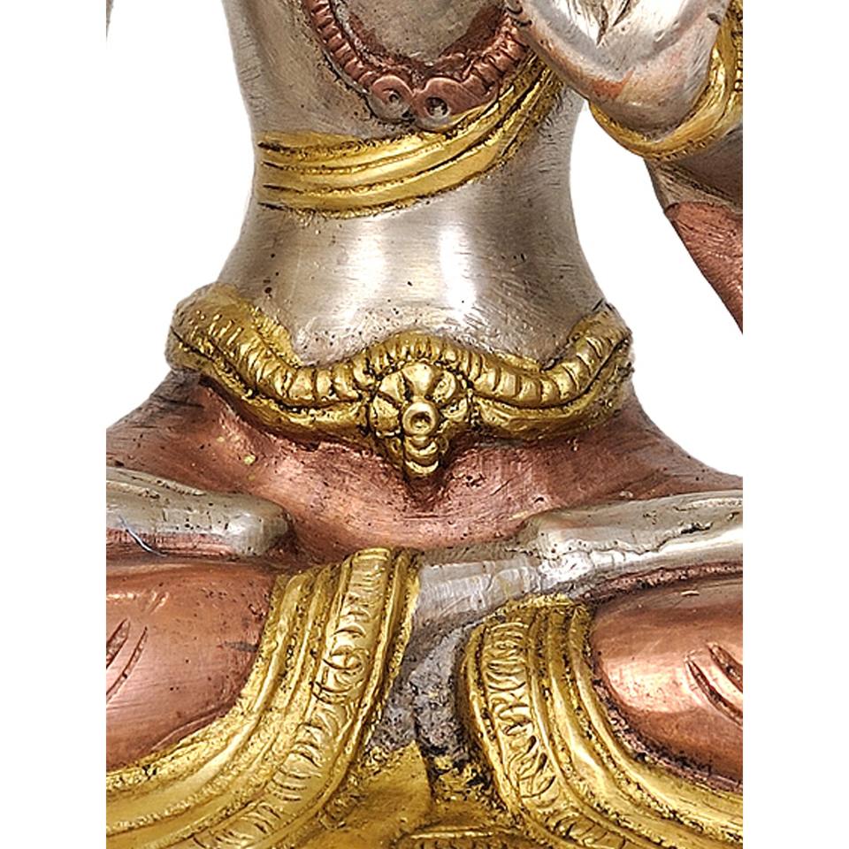 8 Inches Handmade Tibetan Buddhist Goddess White Tara Sculpture in Brass for Gifting Made in India