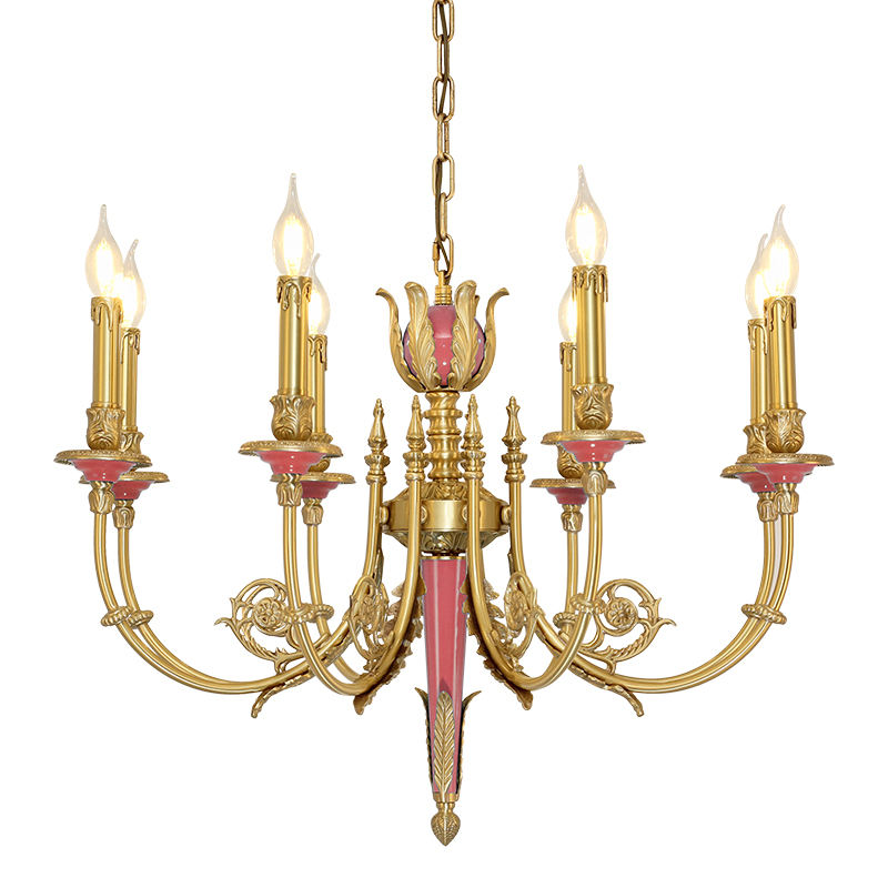 โคมไฟระย้าทองเหลืองฝรั่งเศส8ดวงห้องรับประทานอาหารห้องครัวเกาะห้องนั่งเล่นห้องนอนตกแต่งด้วยเซรามิค
