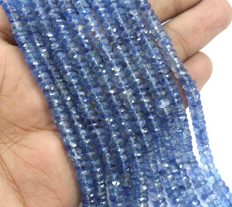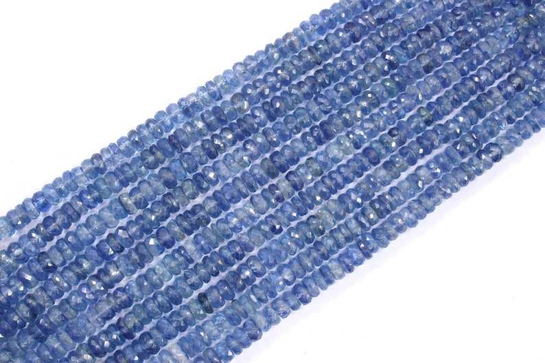 8 "ยาวธรรมชาติ Kyanite พลอยเหลี่ยมเพชรพลอย Rondelle ลูกปัดขนาด3.5-6.5มิลลิเมตรขายส่งผู้ผลิตของแท้ที่มีคุณภาพสูง