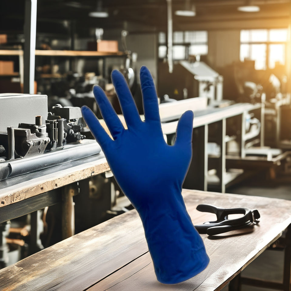 8 mils ถุงมือยางที่มีความเสี่ยงสูงปราศจากผง300มม. (12 ") สีกรมท่า13กรัม