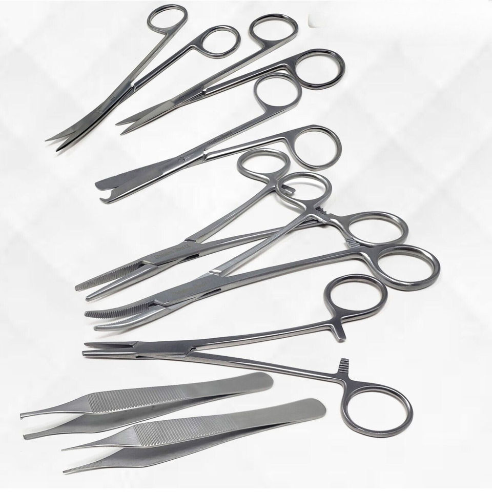 ชุดเครื่องมือผ่าตัดเย็บแผลสแตนเลสเยอรมัน 8 ชิ้น มาตรฐาน CE สำหรับนักศึกษาแพทย์ ใช้ซ้ำได้ ราคาถูก รับผลิตตามแบบ OEM