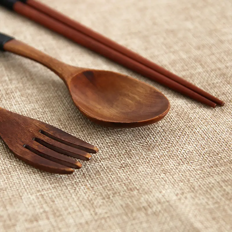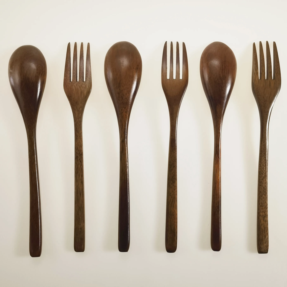 ชุดช้อนส้อมมีดดีไซน์หลากหลาย8ชิ้นโต๊ะรับประทานอาหารทำจากไม้และของตกแต่งห้องครัวมีดสลัดมีดีไซน์หลายสี