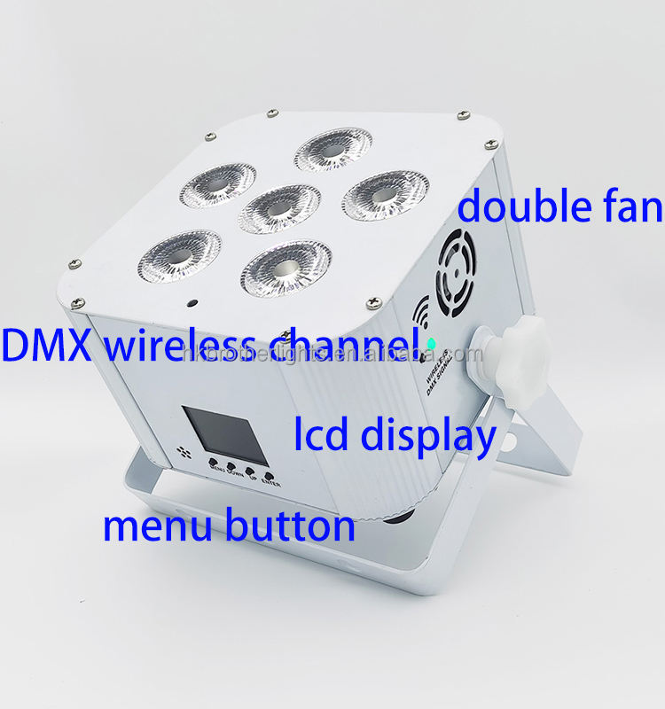 ไฟพาร์ LED แบตเตอรี่ไร้สาย DMX 8 ชิ้น สีขาว 6x18W RGBWA UV 6 in 1 พร้อมรีโมท Wifi สำหรับงานดีเจ งานแต่งงาน