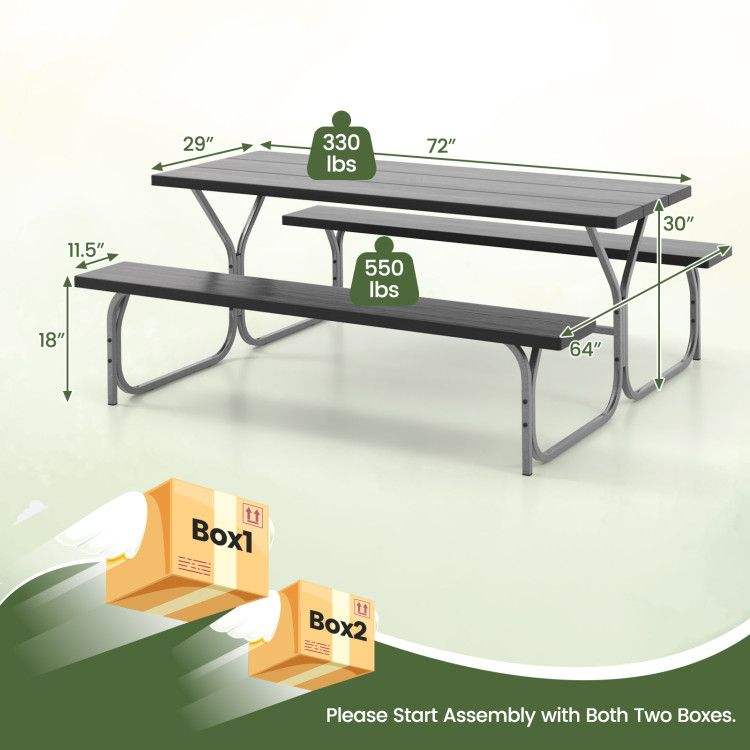 ชุดโต๊ะปิกนิกพร้อมม้านั่งสำหรับ 8 คน ขนาด 6 ฟุต พร้อมท็อปโต๊ะ HDPE ทนทาน