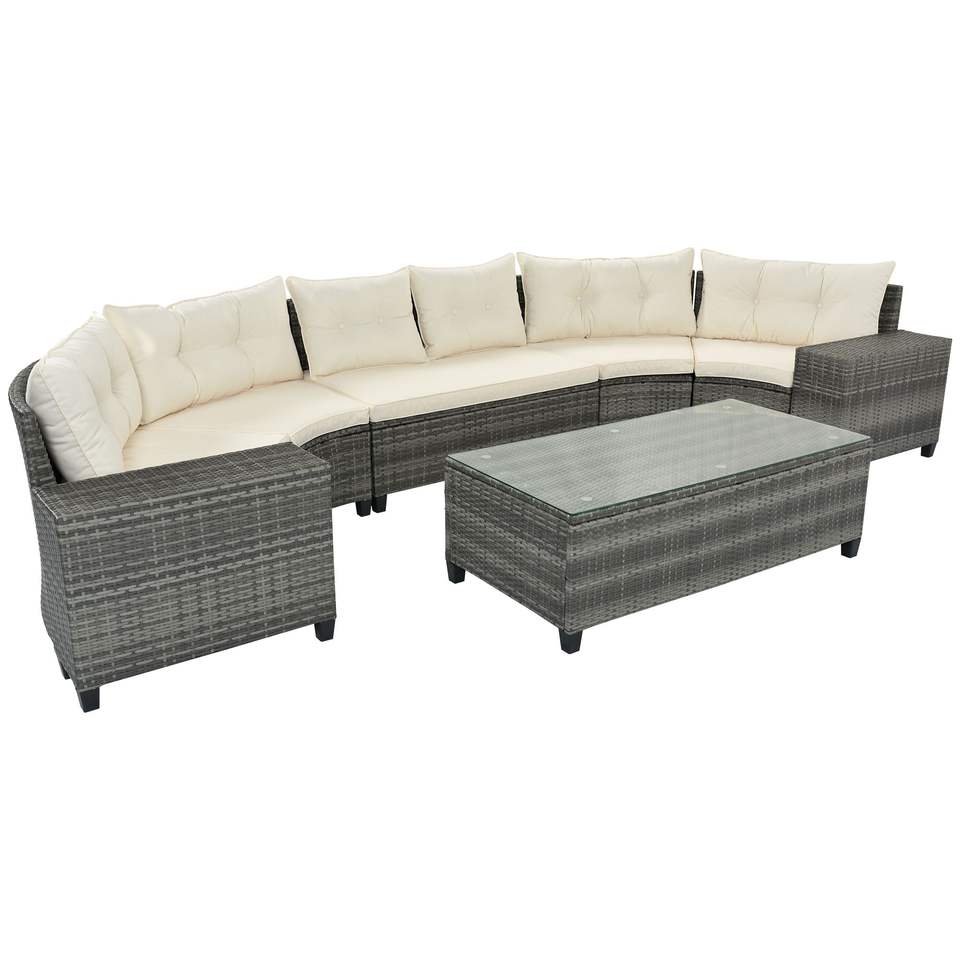 8-Piece All-Weather Outdoor Wicker Sofa Set Movable Cushions Half-Moon Sectional Rectangular Coffee Table PE Rattan UV Protected