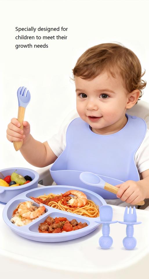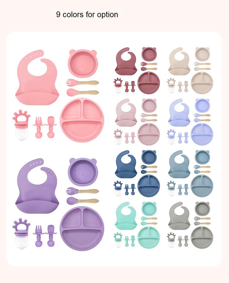 ชุดอาหารเด็ก 8 ชิ้น ปลอดสาร BPA เป็นมิตรกับสิ่งแวดล้อม ทำจากซิลิโคน ดีไซน์การ์ตูนน่ารัก พร้อมจาน ชาม ช้อน ส้อม แก้ว ถ้วย แบบมีฐานดูดติดโต๊ะ รุ่น 9