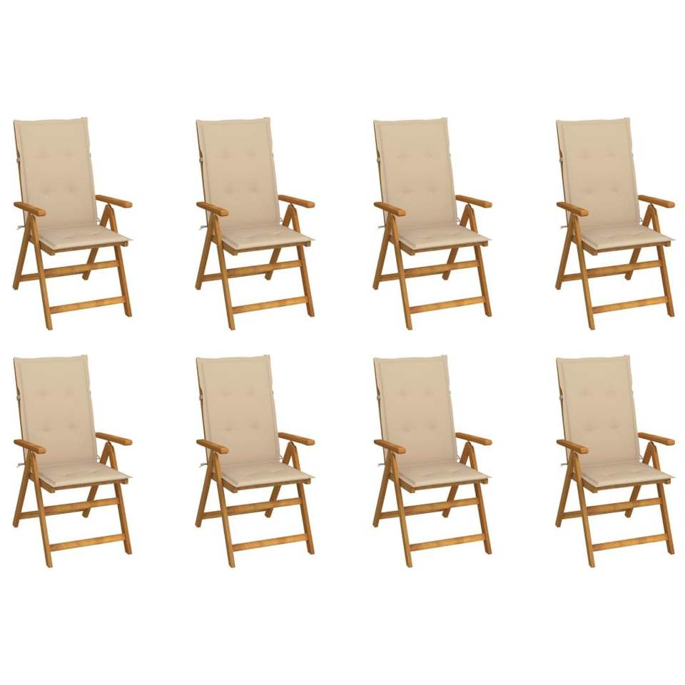 เก้าอี้ลานบ้านพับได้8ชิ้นพร้อมหมอนอิงชุดเฟอร์นิเจอร์ไม้อาคาเซียเนื้อแข็ง