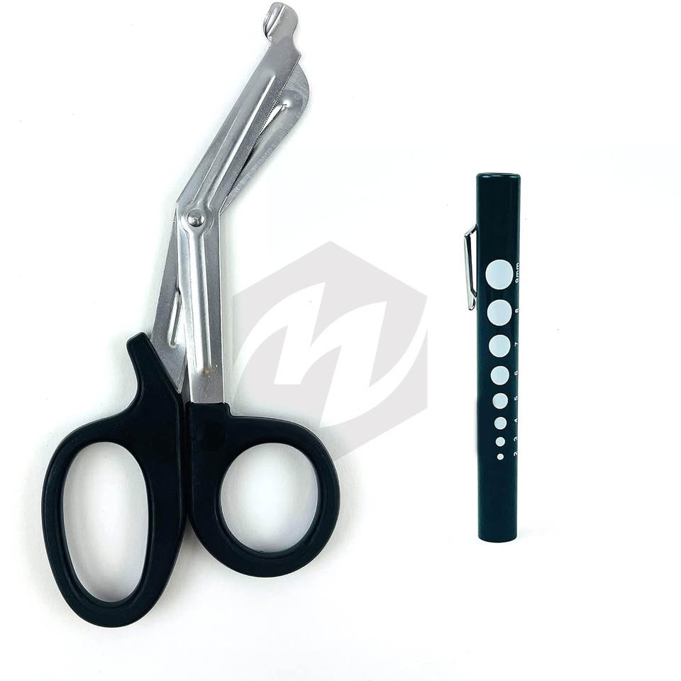 ชุดวินิจฉัยปัญหาสีดำเต็มรูปแบบ8ชิ้น, ค้อนสะท้อนแสง Taylor, C 128 & C 512ส้อมเสียง, กรรไกรผ้าพันแผล, ไฟปากกานักเรียนวัด