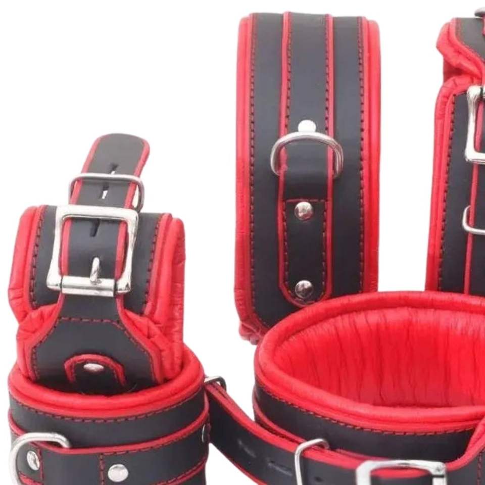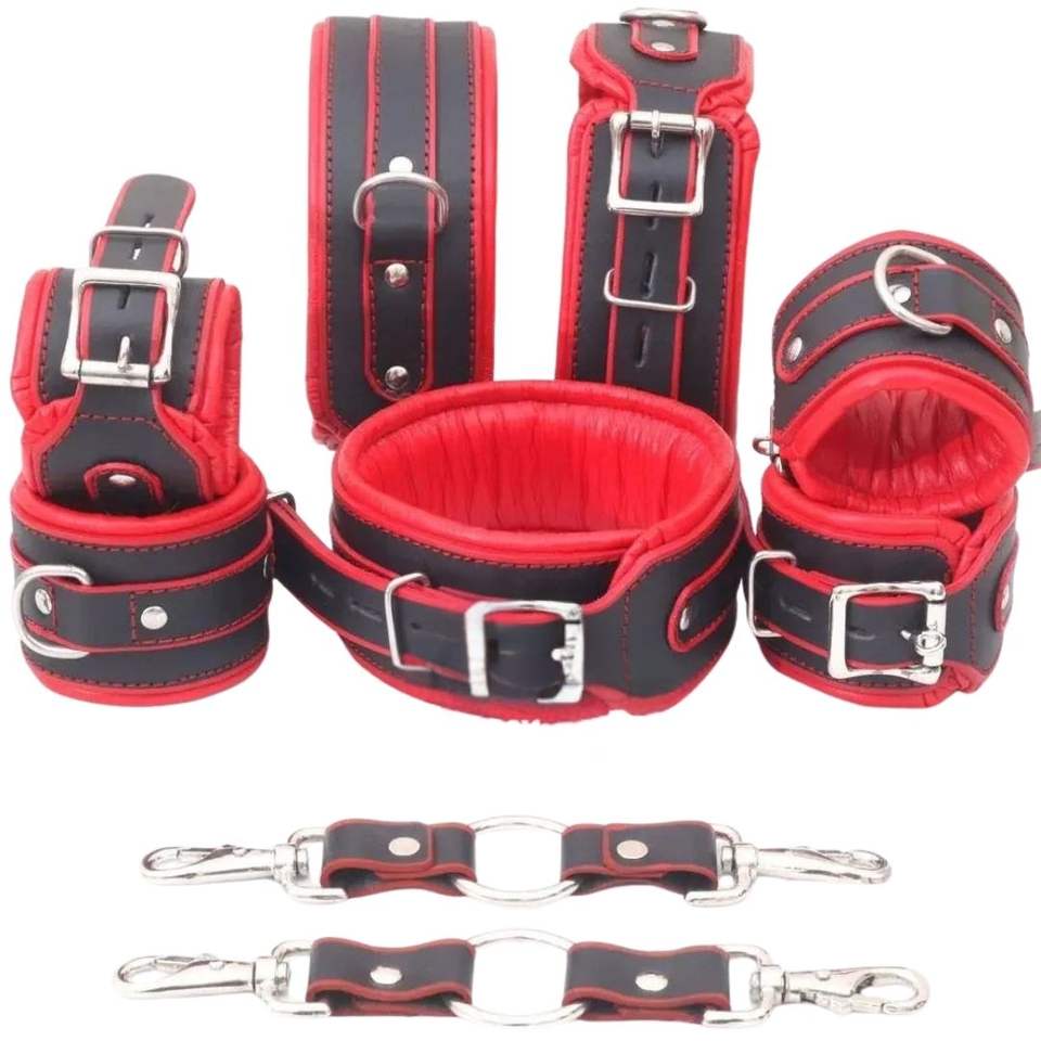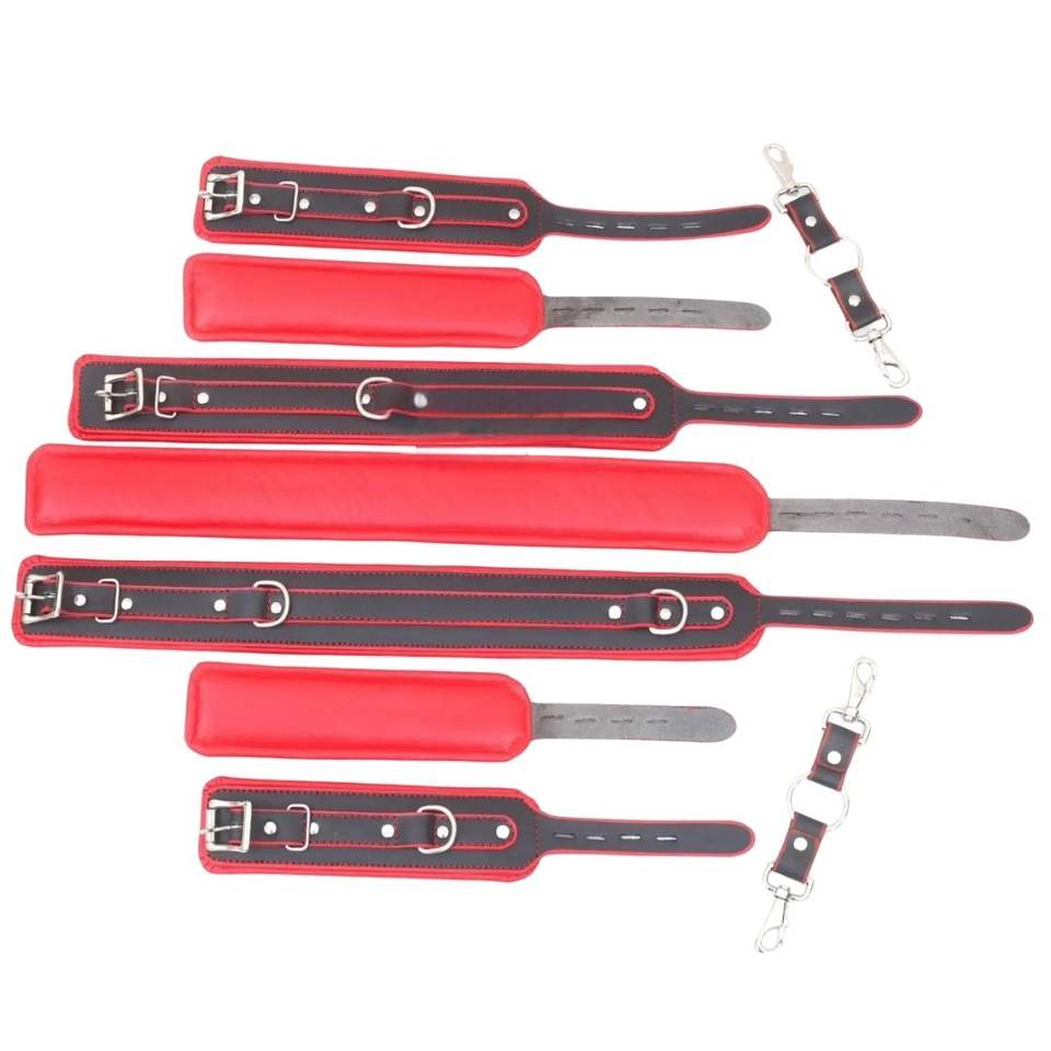 ชุดอุปกรณ์หนังสำหรับพันธนาการ 8 ชิ้น พร้อมปลอกข้อมือ ปลอกข้อเท้า และตัวเชื่อมต่อสำหรับคู่รัก