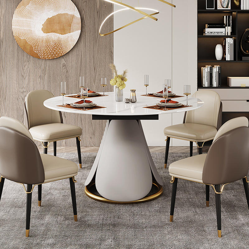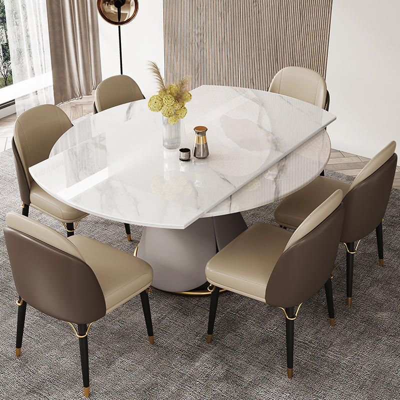 ชุดโต๊ะอาหารหินอ่อน8ชิ้นสไตล์โมเดิร์นหรูหราพร้อมโครงเหล็กสำหรับเฟอร์นิเจอร์ห้องนั่งเล่นภายในบ้าน