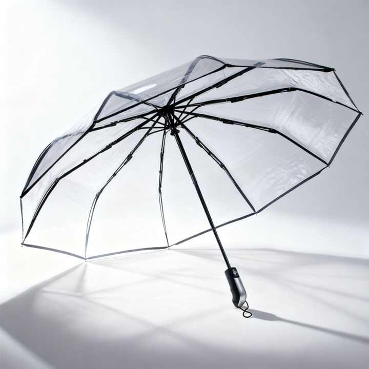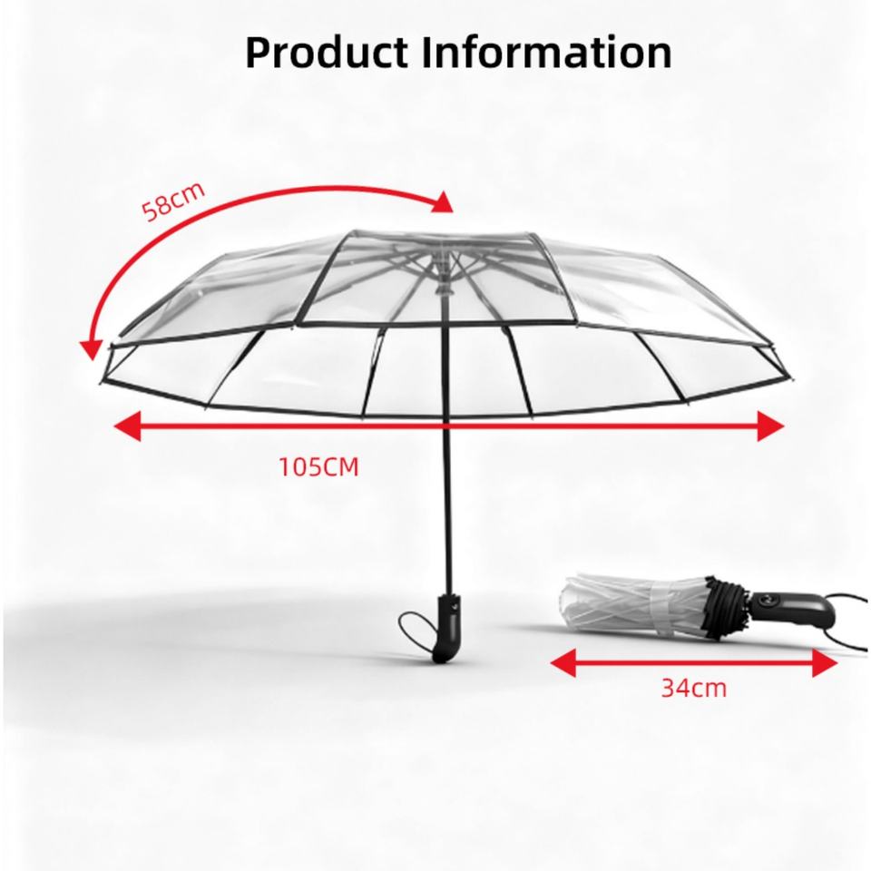 ร่มพับได้อัตโนมัติ 8 ซี่โครง แบบใส โปร่งแสง พับได้สองทบ พกพาสะดวก กันลม กันน้ำ มีห่วงแขวน สีดำ เหมาะสำหรับเป็นของขวัญทางธุรกิจ