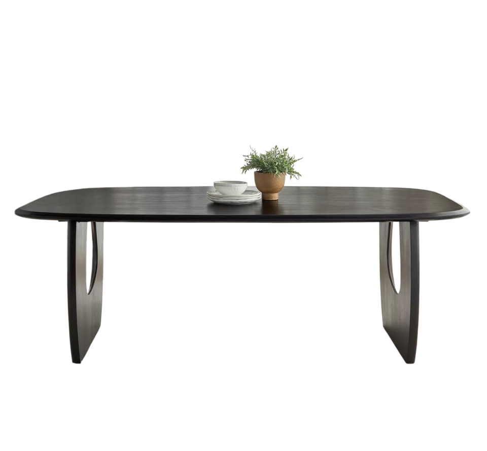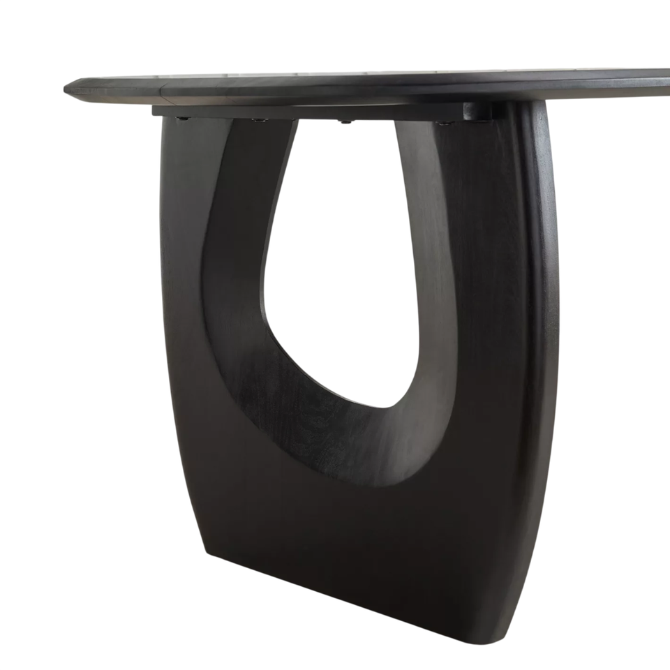 โต๊ะอาหาร 8 ที่นั่ง ไม้มะม่วงแท้ รูปทรงไม่สมมาตร สีดำเข้ม ฐานแบบขาตั้ง สำหรับบ้าน ห้องครัว ร้านอาหาร