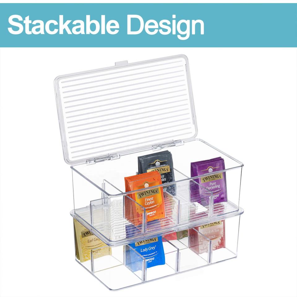 กล่องเก็บถุงชา PET แบบฉีดขึ้นรูป 8 ช่อง ทรงสี่เหลี่ยม ใส ทำมือ ซ้อนกันได้ หรูหรา พร้อมฝาปิด