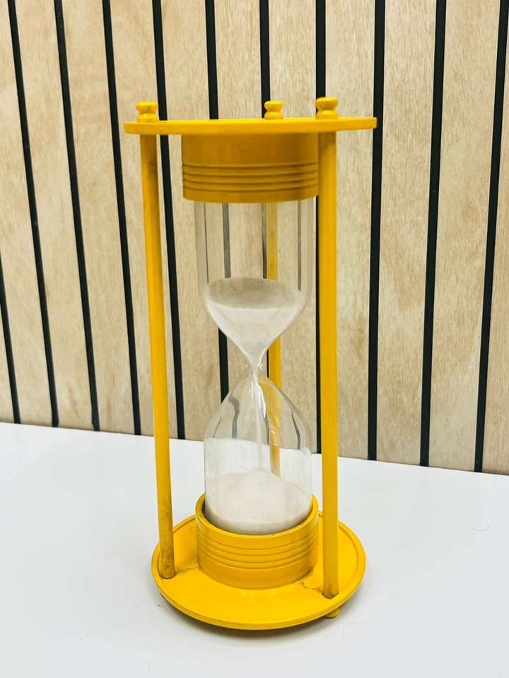 นาฬิกาทรายรูปสัตว์สีเหลืองขนาด 8 นิ้ว ทำจากอะลูมิเนียมชุบเคลือบ | ของตกแต่งโต๊ะสไตล์วินเทจสำหรับงานรับปริญญา