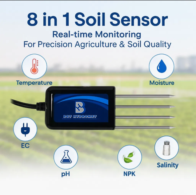 เครื่องวัดคุณภาพดิน 8 in 1 สำหรับการเกษตร วัดค่า NPK/pH/EC และความชื้น