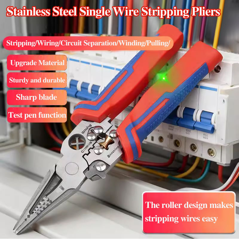 คีมปอกสายไฟสแตนเลสขนาด 8 นิ้ว, ปากกาทดสอบ, ไขควง และรอกพันสายไฟ - รับผลิตแบบ OEM และ ODM ตามความต้องการ