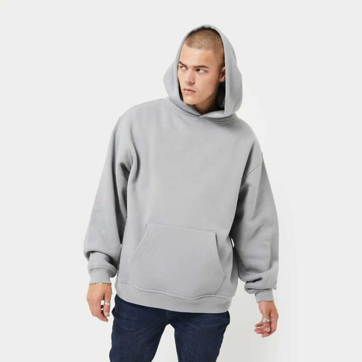เสื้อมีฮู้ดโอเวอร์ไซส์สีเขียวเทามีกระเป๋าจิงโจ้20% ผ้าโพลีเอสเตอร์80% มีซิปด้านหน้า