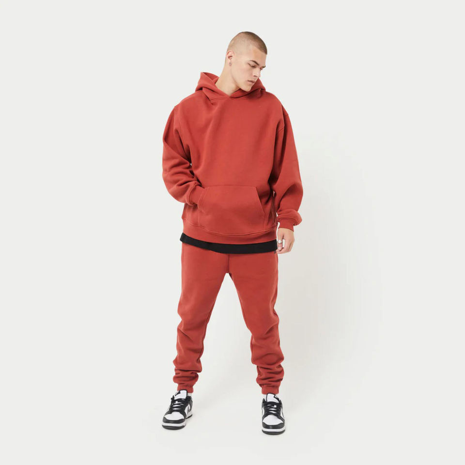 เสื้อมีฮู้ดแบบสวมหัวสีแดงโอเวอร์ไซส์ผ้าคอตตอน20% 80% ผ้าโพลีเอสเตอร์สายสะพายไหล่ไขว้กระดุมชายเสื้อสำหรับฤดูหนาว