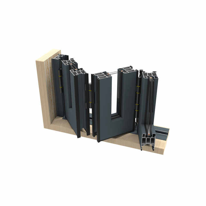 โปรไฟล์อะลูมิเนียมซีรีส์ 80 รุ่น 6063 T5 สำหรับงานหนัก เคลือบสีฝุ่น ระบบหรูหรา ประตูบานเลื่อนพับแบบเยอรมัน โปรไฟล์อะลูมิเนียม