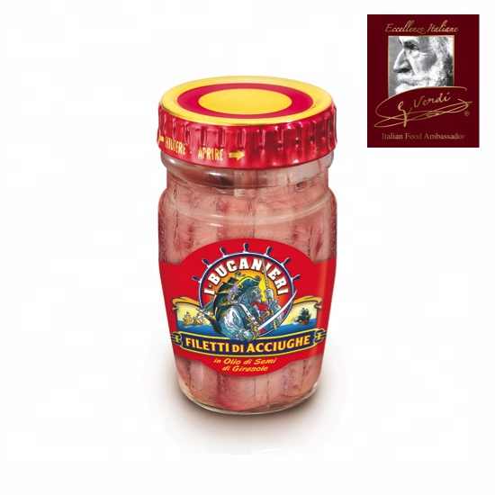 ปลากะตัก80กรัม Bucanieri แบนในน้ำมันดอกทานตะวัน Giuseppe Verdi เลือกปลากะตักทำในอิตาลี