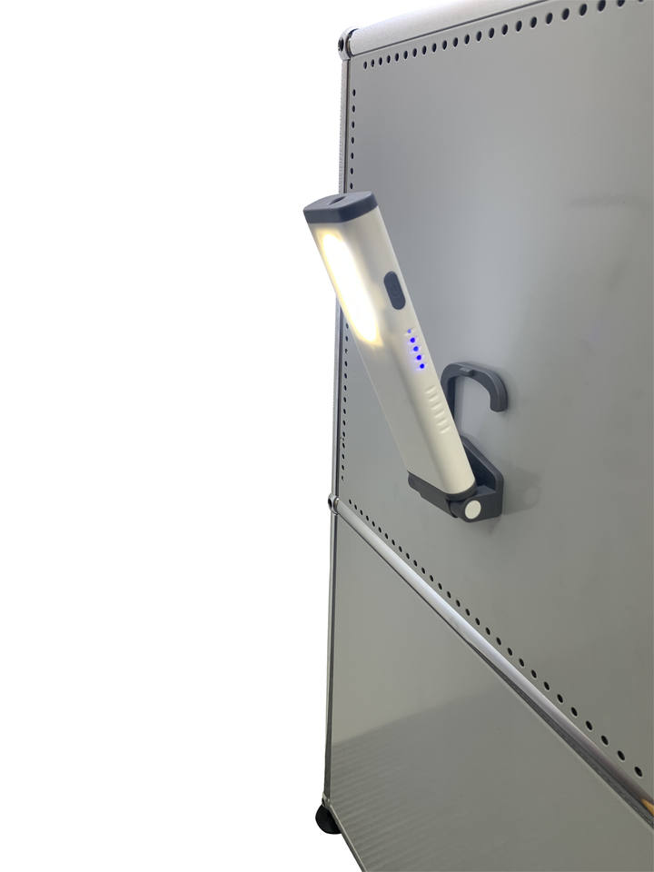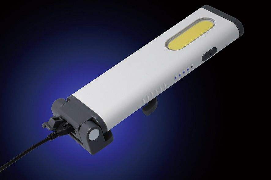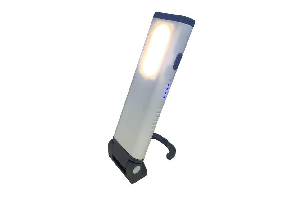 ไฟทำงานแบบชาร์จได้ 800 ลูเมน IP66 ป้องกันแบคทีเรีย CRI สูง COB ให้แสงสองทิศทาง พร้อมแม่เหล็กยึดติด สำหรับโรงงานและสำนักงาน