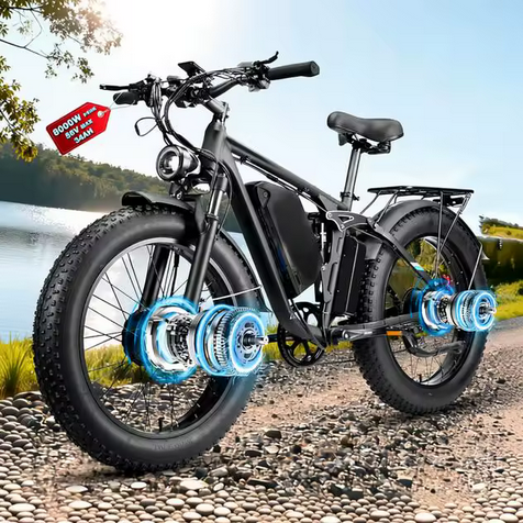 จักรยานไฟฟ้าสำหรับผู้ใหญ่ 8000W 52V 34Ah มอเตอร์คู่ ระยะทางสูงสุด 105 ไมล์ ความเร็วสูงสุด 47 ไมล์ต่อชั่วโมง ระบบกันสะเทือนเต็มรูปแบบ ระบบเบรกที่สมบูรณ์แบบ