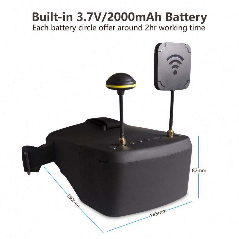 แว่นตา FPV 800D 5นิ้ว40ch 5.8GHz พร้อม DVR ในตัวและการออกแบบจอแยก