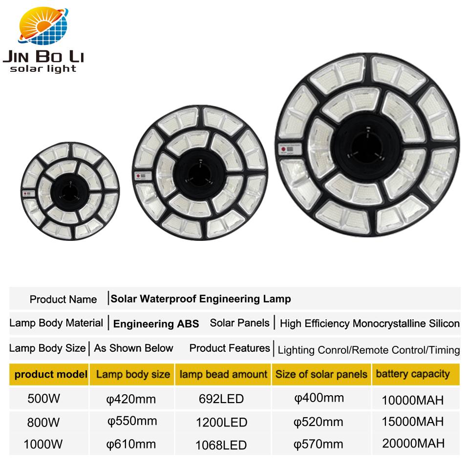 ไฟถนน LED กลางแจ้งแบบ UFO พร้อมเซ็นเซอร์ตรวจจับความเคลื่อนไหว แผงโซลาร์เซลล์ในตัว 3 สี 800W 1000W ABS ระบบเปิด-ปิดอัตโนมัติ ระดับการป้องกัน IP65 สำหรับสวน รับประกัน 5 ปี