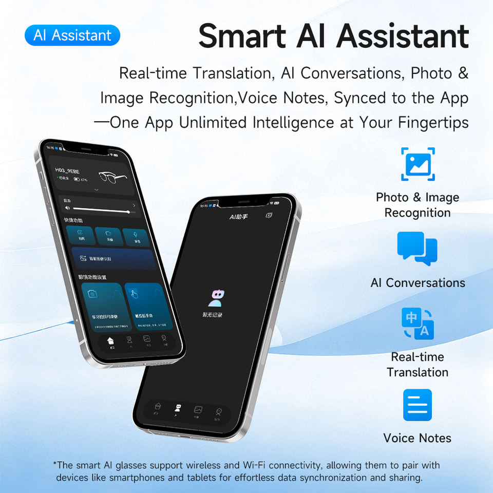 แว่นตาอัจฉริยะ 800W HD กล้อง 16G ถ่ายโอนข้อมูลผ่าน WIFI พร้อม ChatGPT ควบคุมด้วยท่าทาง และแปลภาษาด้วย AI สำหรับการถ่ายภาพ