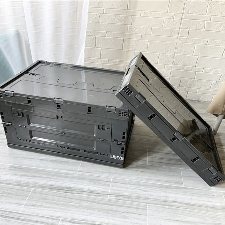 กล่องพลาสติกแบบพับได้เปิดด้านหน้าได้80L ภาชนะพลาสติกสำหรับตั้งแคมป์พร้อมฝาปิดกล่องพับได้