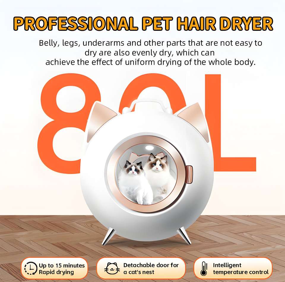 กล่องอบแห้งสัตว์เลี้ยงอัจฉริยะ 80 ลิตร รุ่นทันสมัย ป้องกันแบคทีเรีย เป็นมิตรกับสิ่งแวดล้อม ผลิตจากพลาสติก ABS สำหรับสุนัขและแมว 110-240V รับผลิตแบบ OEM/ODM ไม่มีกลิ่น