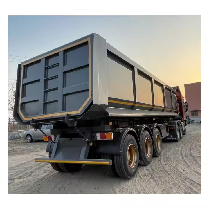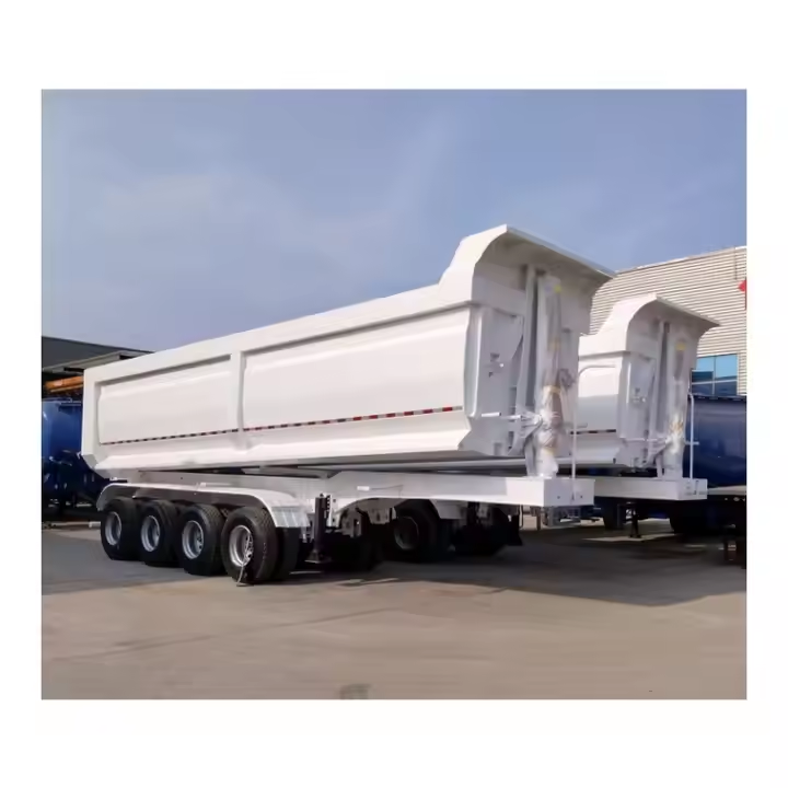 รถดัมพ์ไฮดรอลิกแบบกึ่งพ่วงเหล็กทรงตัวยู 4 แกน 80 ตัน ดีเซล อัตโนมัติ ใหม่ พร้อมกระบะบรรทุกที่ทนทานต่อการสึกหรอ