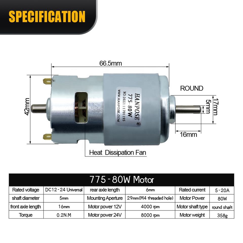 ประเภทมอเตอร์:มอเตอร์ DC แบบมีแปรง775-80W