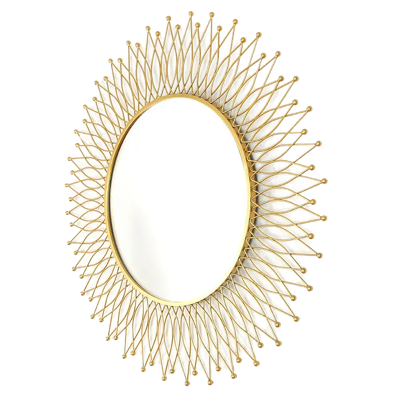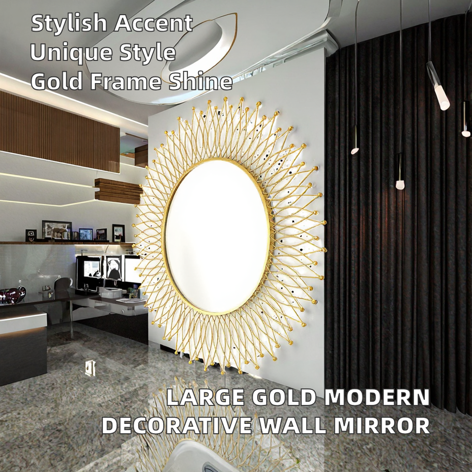 กระจกติดผนังตกแต่งบ้าน รุ่น 075 ดีไซน์ทันสมัย ขนาดใหญ่ 80 ซม. โครงโลหะสีทองหนา 4 มม. ผลิตด้วยมือ สำหรับตกแต่งภายในห้องนั่งเล่น
