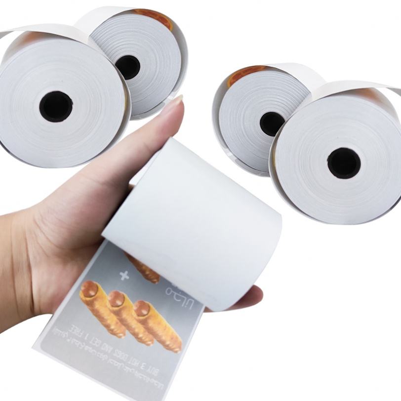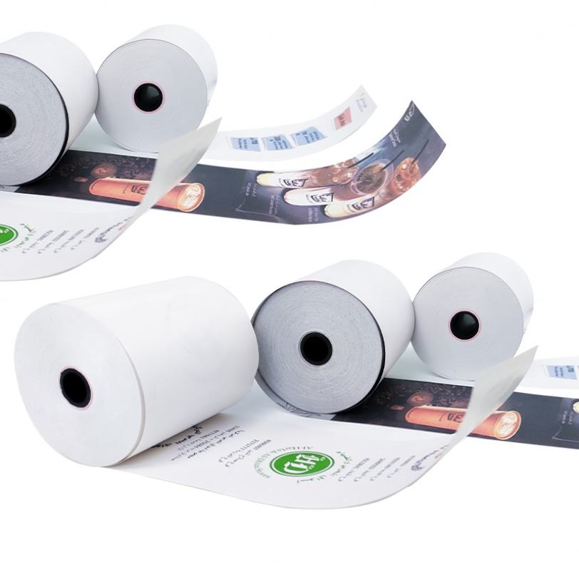 ม้วนกระดาษความร้อนพิมพ์ลายขนาด 80 มม.*80 มม. 55 แกรม สำหรับเครื่องเอทีเอ็มและเครื่องพิมพ์ใบเสร็จ