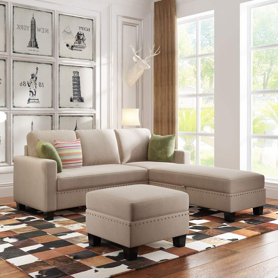 โซฟาเข้ามุมพับได้, โซฟารูปตัวแอลไซส์81.1*76.3*35นิ้วสำหรับห้องนั่งเล่น