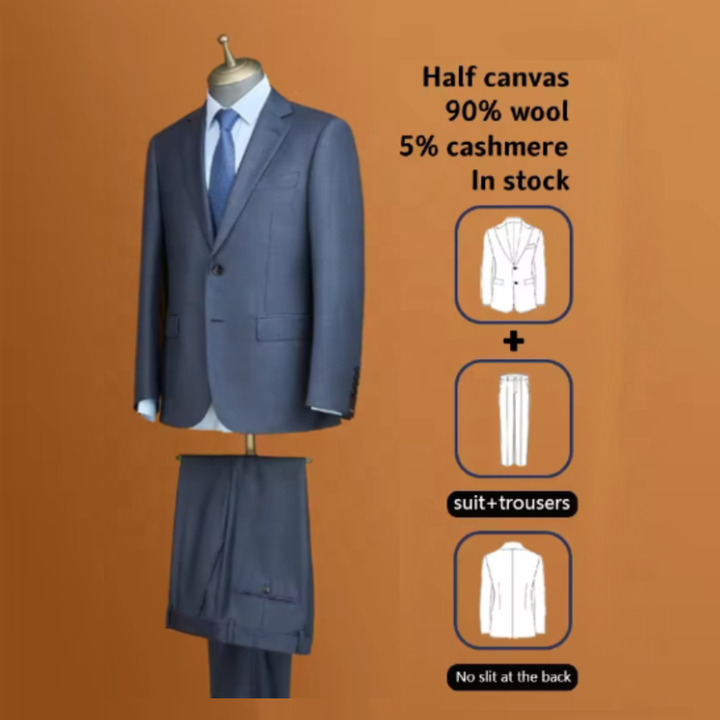ชุดสูทผู้ชายสไตล์อิตาลี 816 MTM ตัดเย็บพิเศษ ผ้าขนสัตว์ 88% สีน้ำเงิน แบบฮาล์ฟแคนวาส สำหรับธุรกิจ มีสินค้าในสต็อก