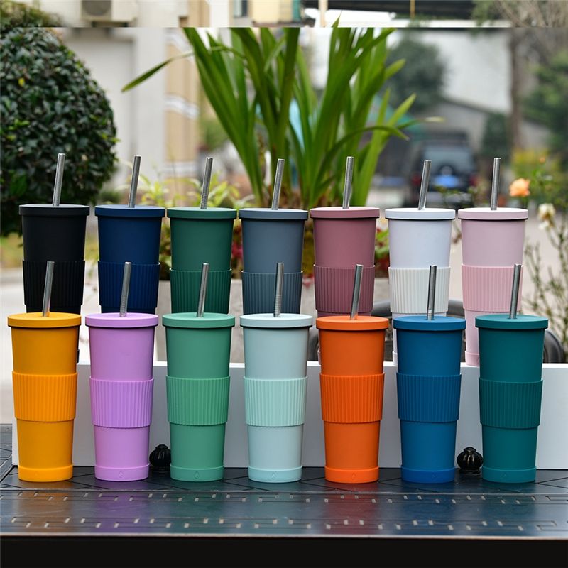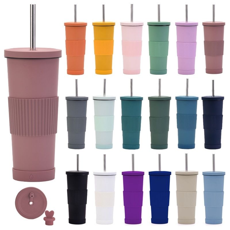 แก้วน้ำสแตนเลสสุญญากาศขนาดใหญ่ 830 มล. พร้อมหลอดดูด เก็บอุณหภูมิได้นาน 6-12 ชั่วโมง ดีไซน์ทรงตรง สำหรับน้ำร้อน/น้ำเย็น