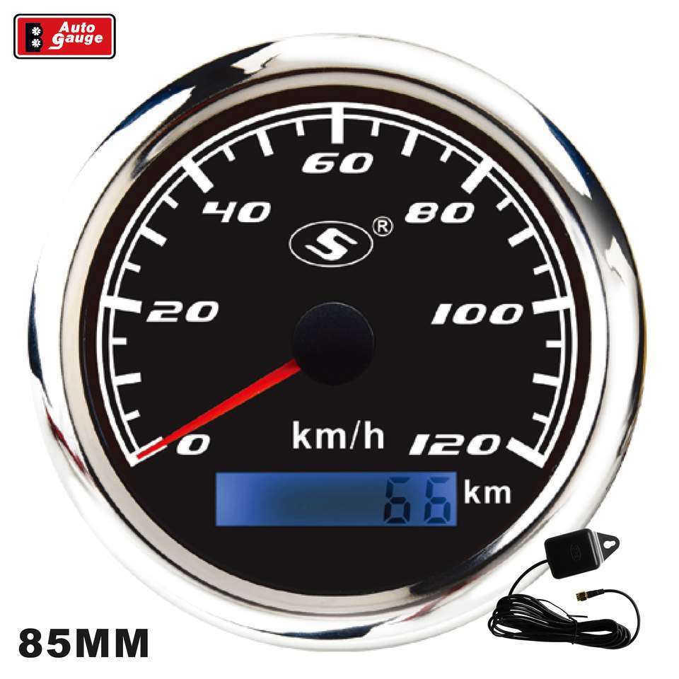 มาตรวัดความเร็วแบบเข็มไฟฟ้า ขนาด 85 มม. 3 3/8 นิ้ว พร้อมเซ็นเซอร์ GPS สีดำ วัดความเร็วสูงสุด 120 กม./ชม. พร้อมมาตรวัดระยะทาง สำหรับรถบรรทุก รถบัส รถยนต์