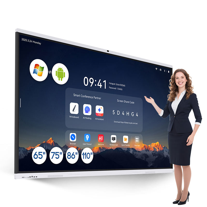 กระดานอัจฉริยะแอนดรอยด์ขนาด 86 นิ้ว พร้อมจอ LED ขนาด 65 นิ้ว ความละเอียด 4K ระบบสัมผัส IR 40 จุด สำหรับห้องเรียน
