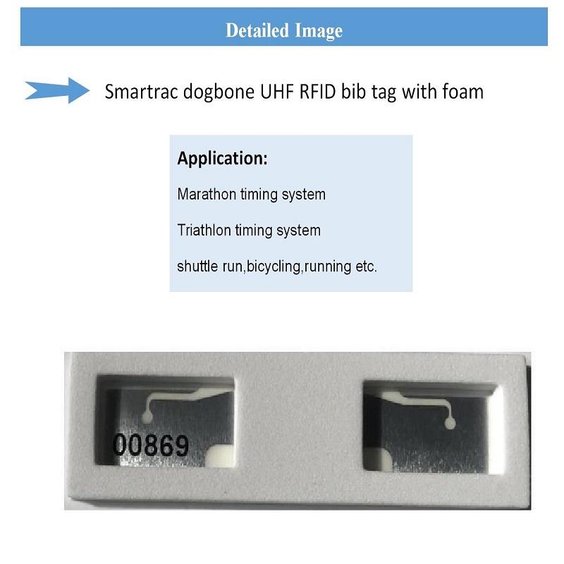 สติกเกอร์ฝัง RFID Dogbone อัจฉริยะ860-960Mhz,ชิป R6P R6สำหรับระบบจับเวลาแข่งแข่งไตรกีฬามาราธอน