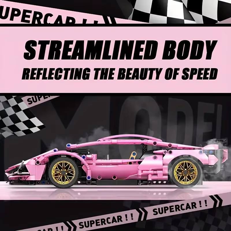8600A ชุดตัวต่อรถแข่งซูเปอร์คาร์สีชมพู 50 ชิ้น วัสดุพลาสติก ABS ขนาด 1:12 ของขวัญวันฮาโลวีน คริสต์มาส วันเกิด สำหรับทุกเพศ