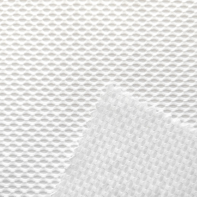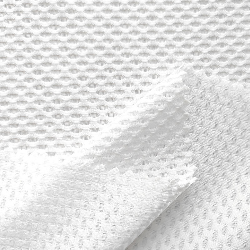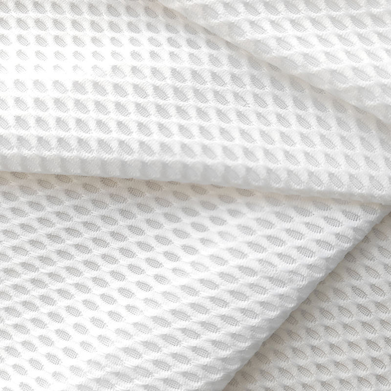 ผ้าตาข่ายเนื้อหนาปานกลาง ผลิตจากโพลีเอสเตอร์ 87% สแปนเด็กซ์ 13% ยืดหยุ่นได้ดี เหมาะสำหรับชุดกีฬากลางแจ้ง