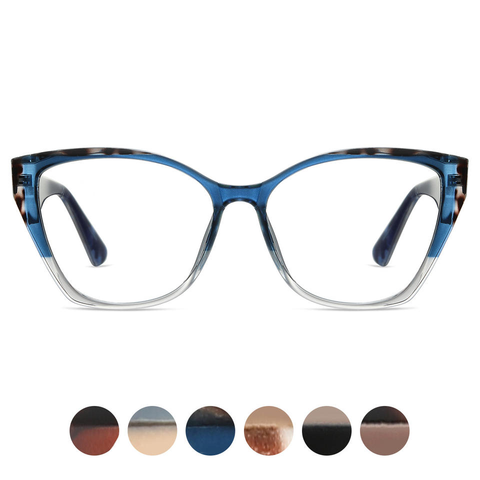 กรอบแว่นตา Cat Eye รุ่น 87218 วัสดุ TR90 อะซิเตท สองสี ป้องกันแสงสีฟ้า สำหรับทุกเพศ ขนาดกลาง กรอบแว่นสายตา