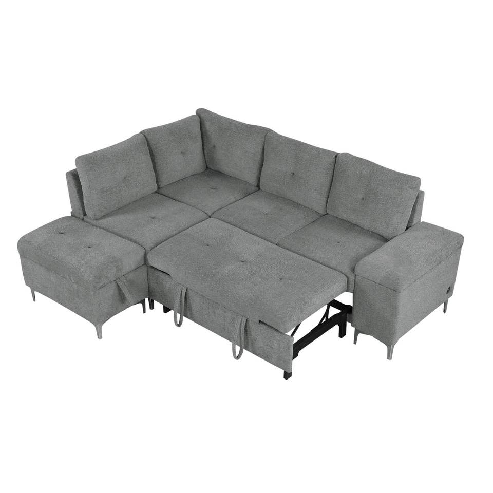 โซฟาผ้าหุ้มเบาะสีเทารูปตัว L 88.2ที่เก็บของกว้างขวางที่วางแก้วสองพอร์ต USB สองช่องเตียงโซฟาอเนกประสงค์สำหรับการอยู่อาศัย