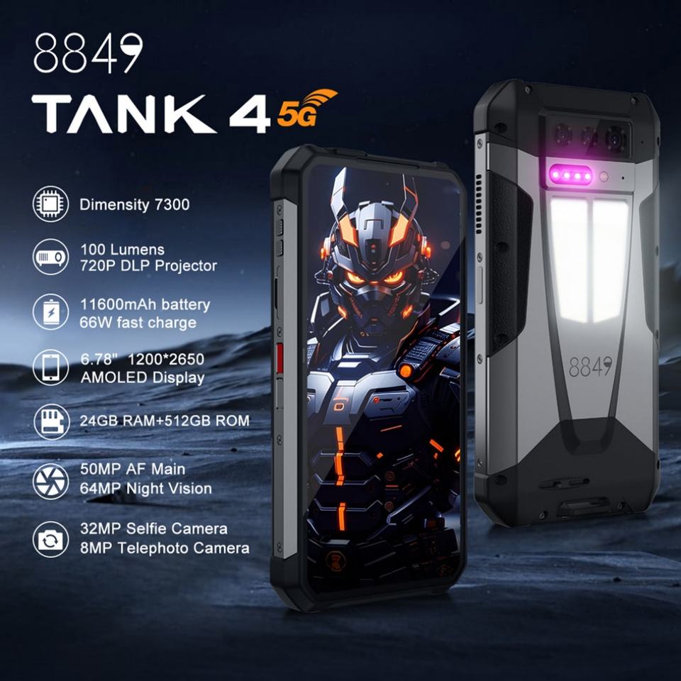 สมาร์ทโฟนรุ่น 8849 TANK 4 5G ที่ทนทาน พร้อมโปรเจคเตอร์ หน้าจอ 6.78 นิ้ว ระบบปฏิบัติการ Android 14 หน่วยความจำ 12+512GB แบตเตอรี่ 11600mAh หน้าจอ Amoled โทรศัพท์พร้อมระบบมองเห็นในเวลากลางคืน ยี่ห้อ Unihertz