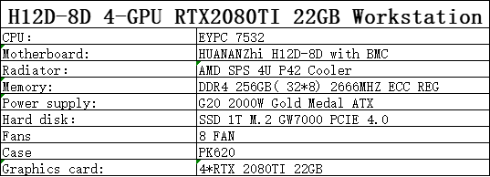 หมายเลขรุ่น:H12D-8D 4-GPU RTX2080TI 22GB Workstation