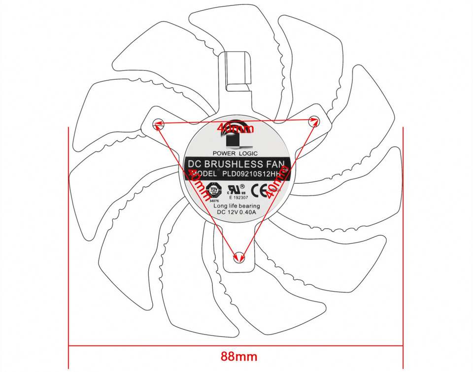 พัดลมระบายความร้อนสำหรับการ์ดจอ T129215SU PLD09210S12HH 88มม. สำหรับ1060กิกะไบต์ GTX 1050 1070 GV-RX570 580 AORUS RX 470 480พัดลม380X R9