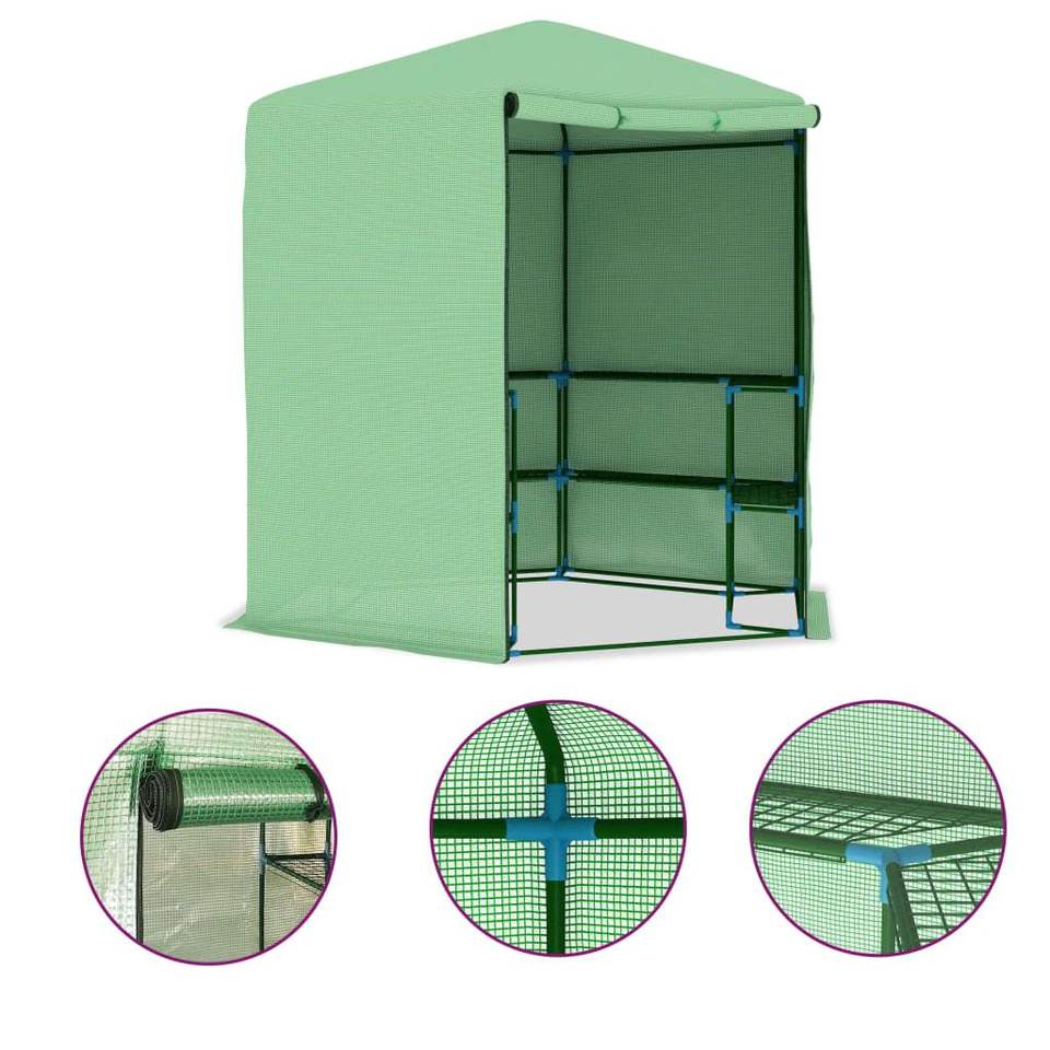 89.4 \ "x87.8 \" เรือนกระจกทางการเกษตรเหล็กพร้อมชั้นวางเรือนกระจกให้พื้นที่จัดเก็บที่สะดวก